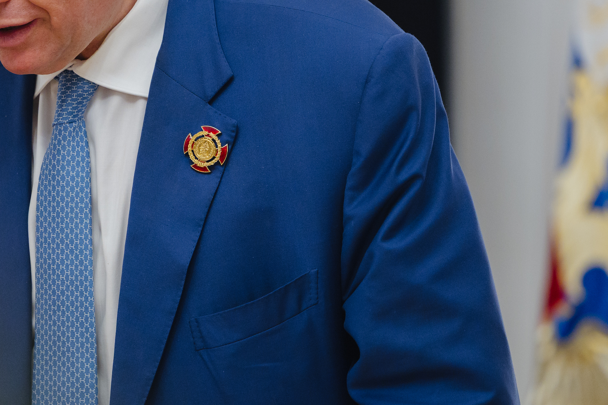 В знак признательности и благодарности командир Алексей Верещагин вручил лидеру ЛДПР Почётный знак Александра Невского первой степени. Ранее таким знаком бригада отмечала лишь Верховного Главнокомандующего – Президента Российской Федерации Владимира Путина. Высшую награду бригады Председатель ЛДПР повесил на лацкан пиджака, дав обещание не снимать её до наступления полной и безоговорочной Победы России в специальной военной операции.